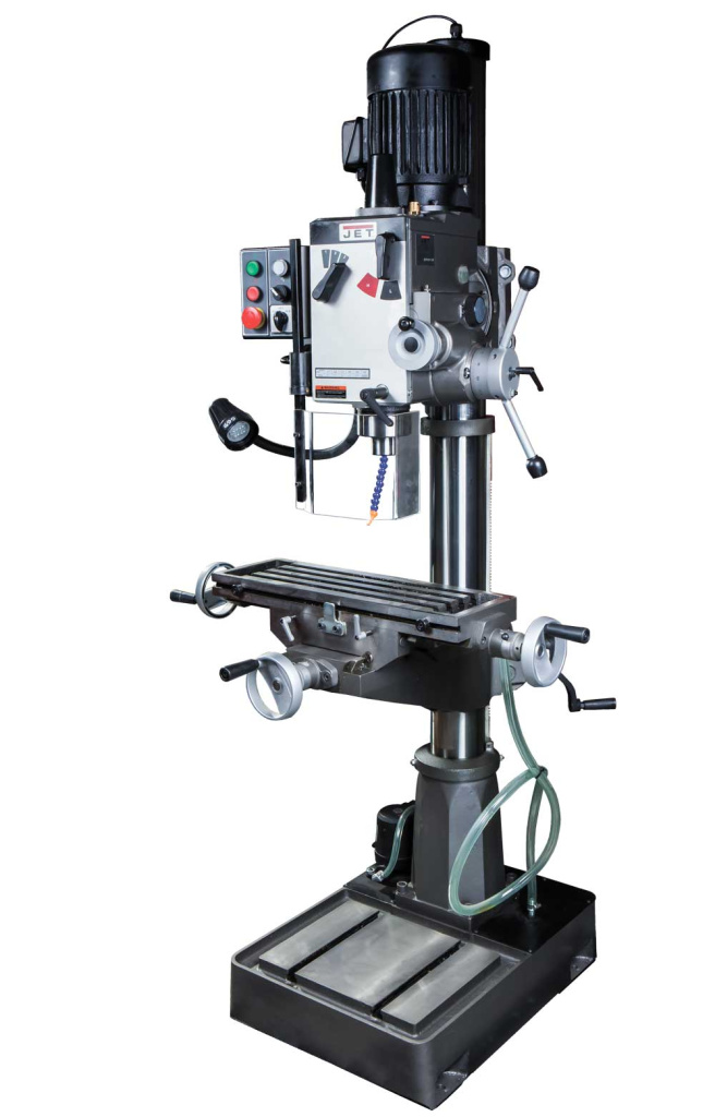Сверлильная головка свободно поворачивается в горизонтальной и вертикальной плоскости, что позволяет подобрать оптимальное пространственное положение. Для защиты режущего инструмента от перегрева имеется система подачи СОЖ. Регулировка скорости вращения шпинделя осуществляется с помощью удобных переключателей, расположенных на лицевой панели станка. К сожалению, стоимость модели делает станок практически недоступным для владельцев домашних мастерских. Подобное оборудование могут себе позволить только профессиональные пользователи.