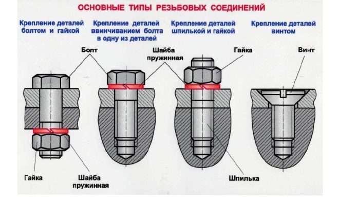 В зависимости от типа профиля резьба классифицируется на следующие разновидности: